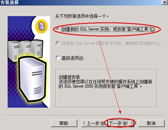 5.选择“创建新的SQL Server实力,或安装客户端工具”;