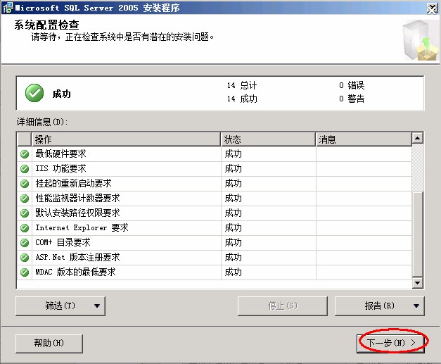打开SQL server x64\Servers下的【setup.exe】文件运行安装数据库。勾选“我接收许可条款和条件”进入下一步点击“安装”,安装完成Microsoft SQL Native Client与Microsoft SQL Server 2005安装程序支持文件。然后进入Microsoft SQL Server2005安装程序向导,点击“下一步”检查系统配置,根据需要填写公司信息。