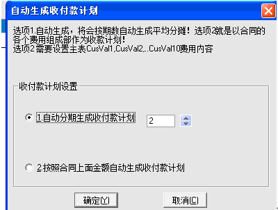 2.分期收付款有两种形式给客户选择,第一种是平均分为等金额的收付款,第二种是客户自定义收付款金额: